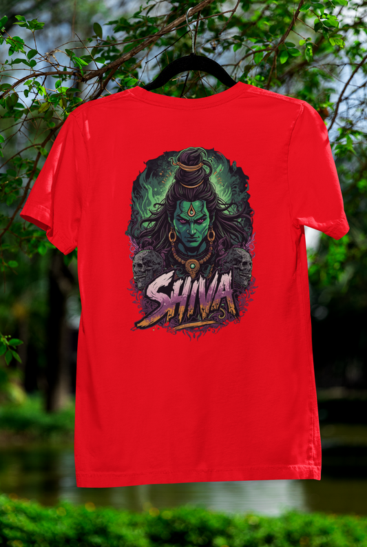 Red Graphic T-Shirt for Men | Premium Cotton | Shiva Print | Regular Fit