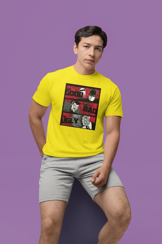 Yellow Graphic T-Shirt for Men | Premium Cotton | Batman Print | Regular Fit