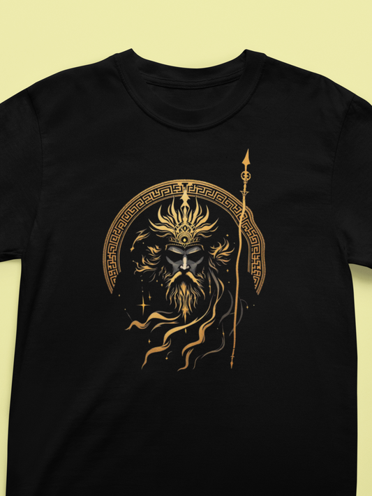 Black Graphic T-Shirt for Men | Premium Cotton | Poseidon - Greek God Print | Regular Fit