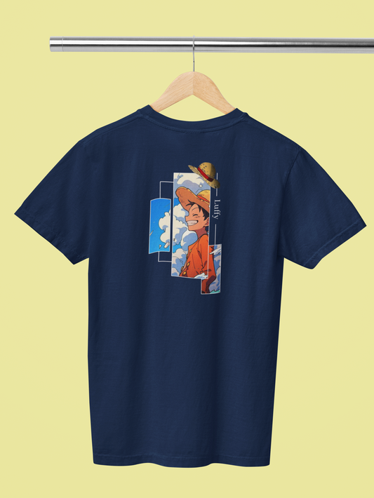 Pearl Blue Graphic T-Shirt for Men | Premium Cotton | Luffy Print | Regular Fit