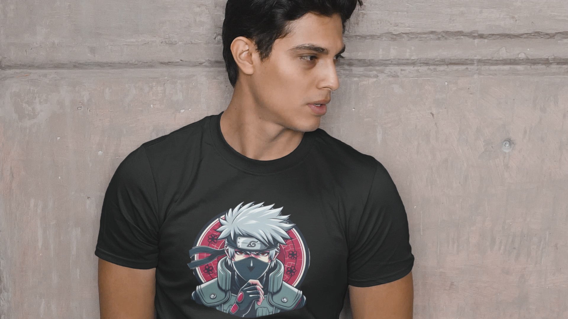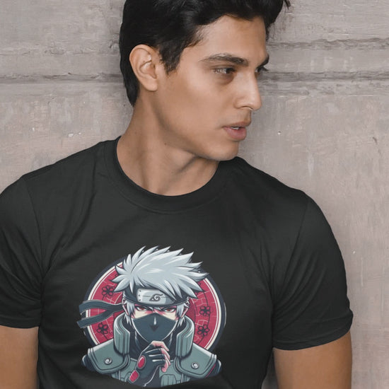 Premium Cotton Black Graphic T-Shirt for Men - Naruto (Kakashi)