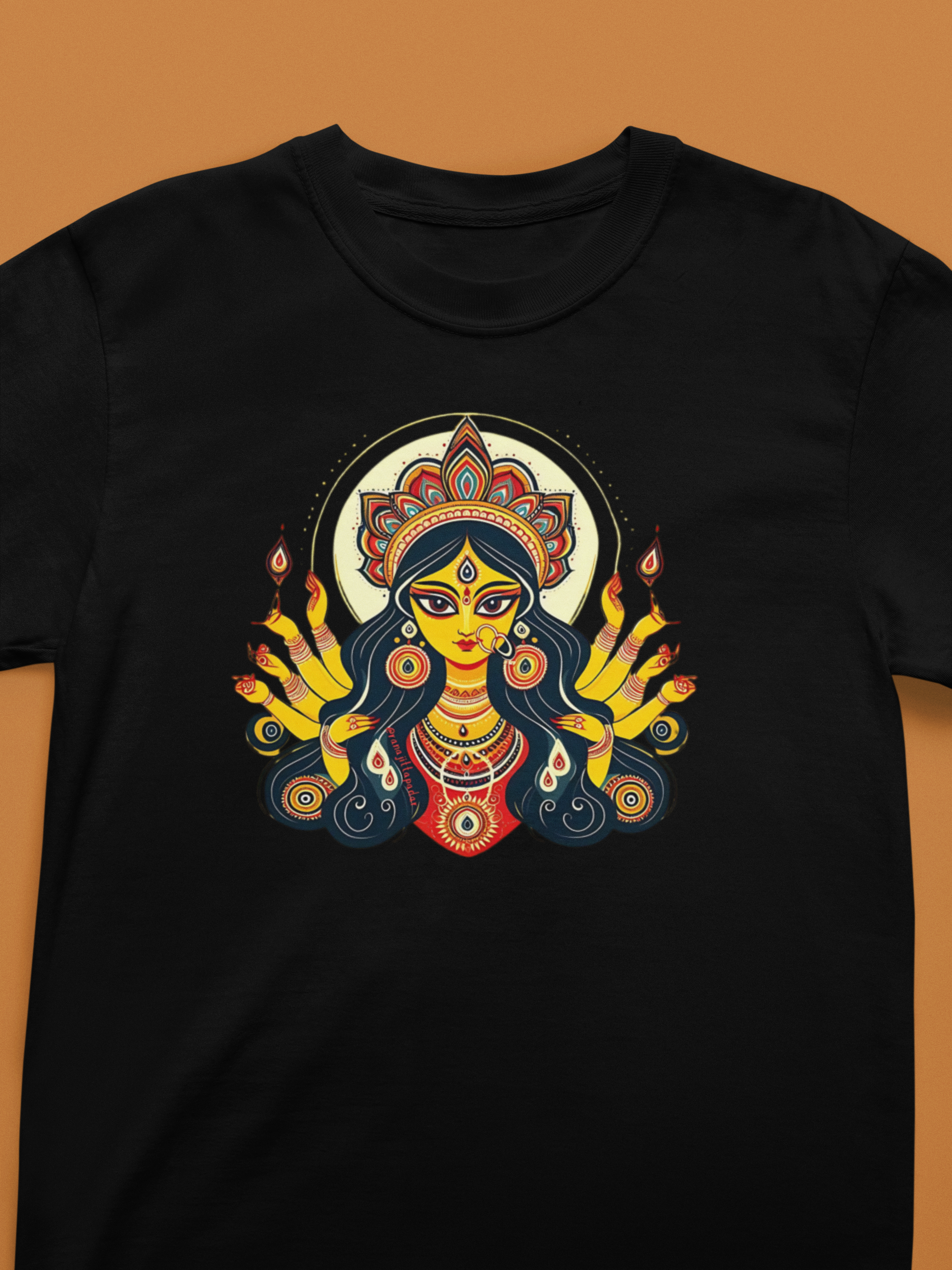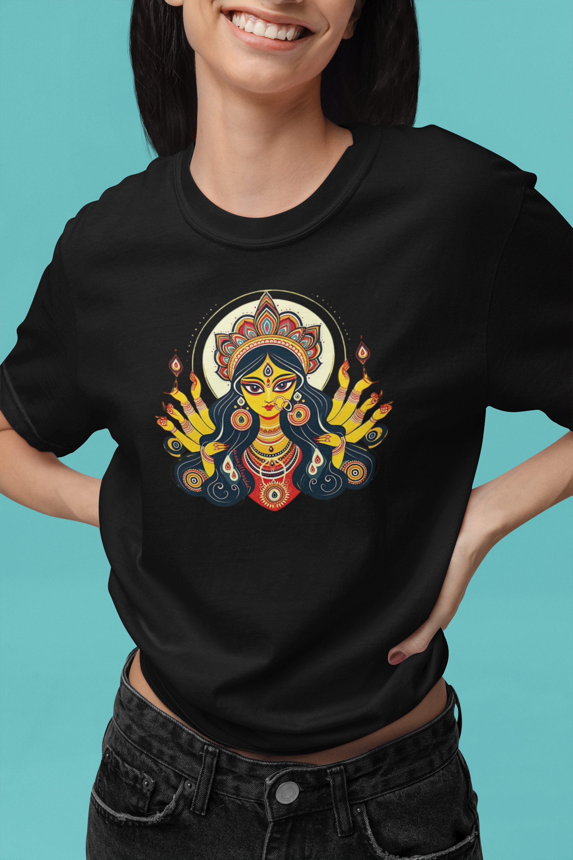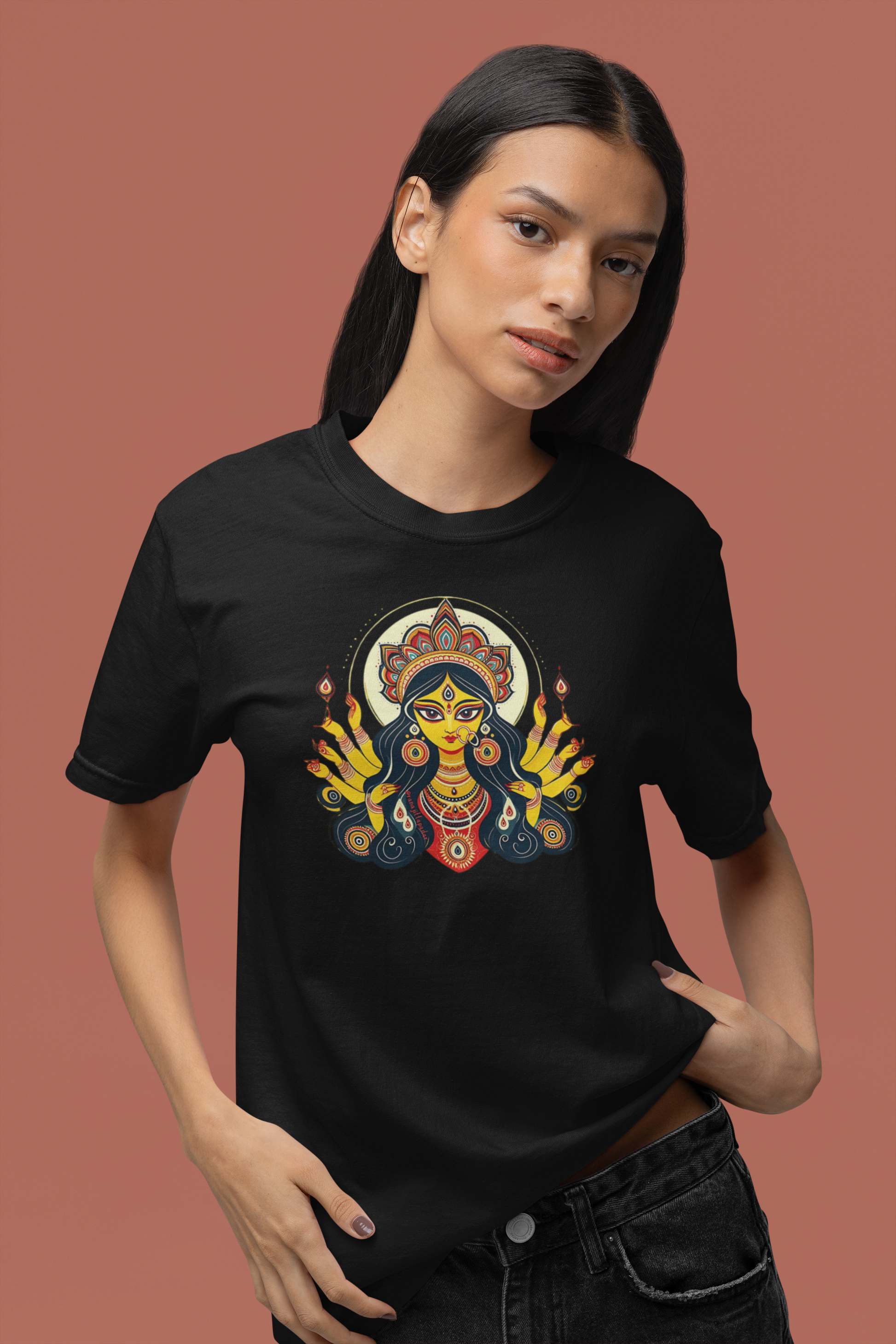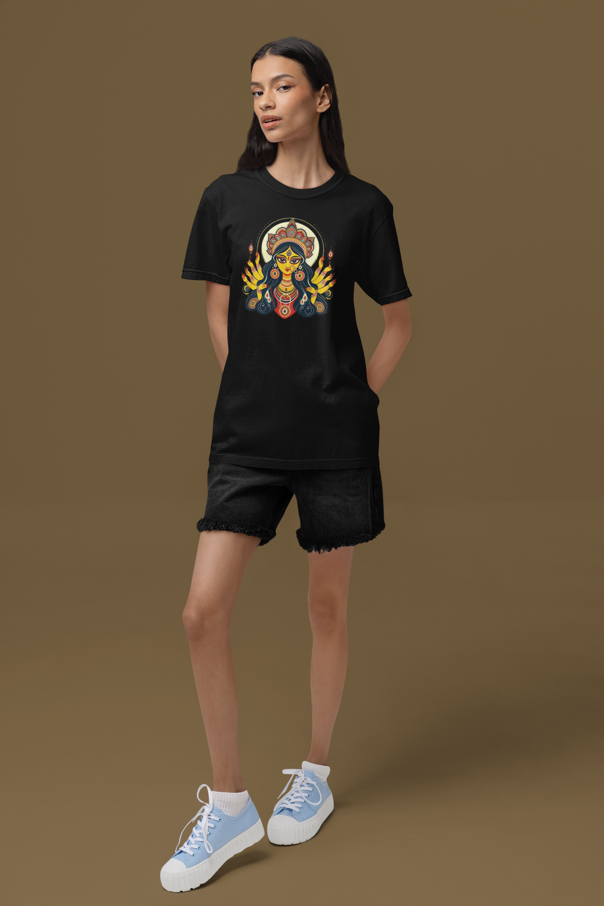 Premium Cotton Black Graphic T-Shirt for Women - Durga