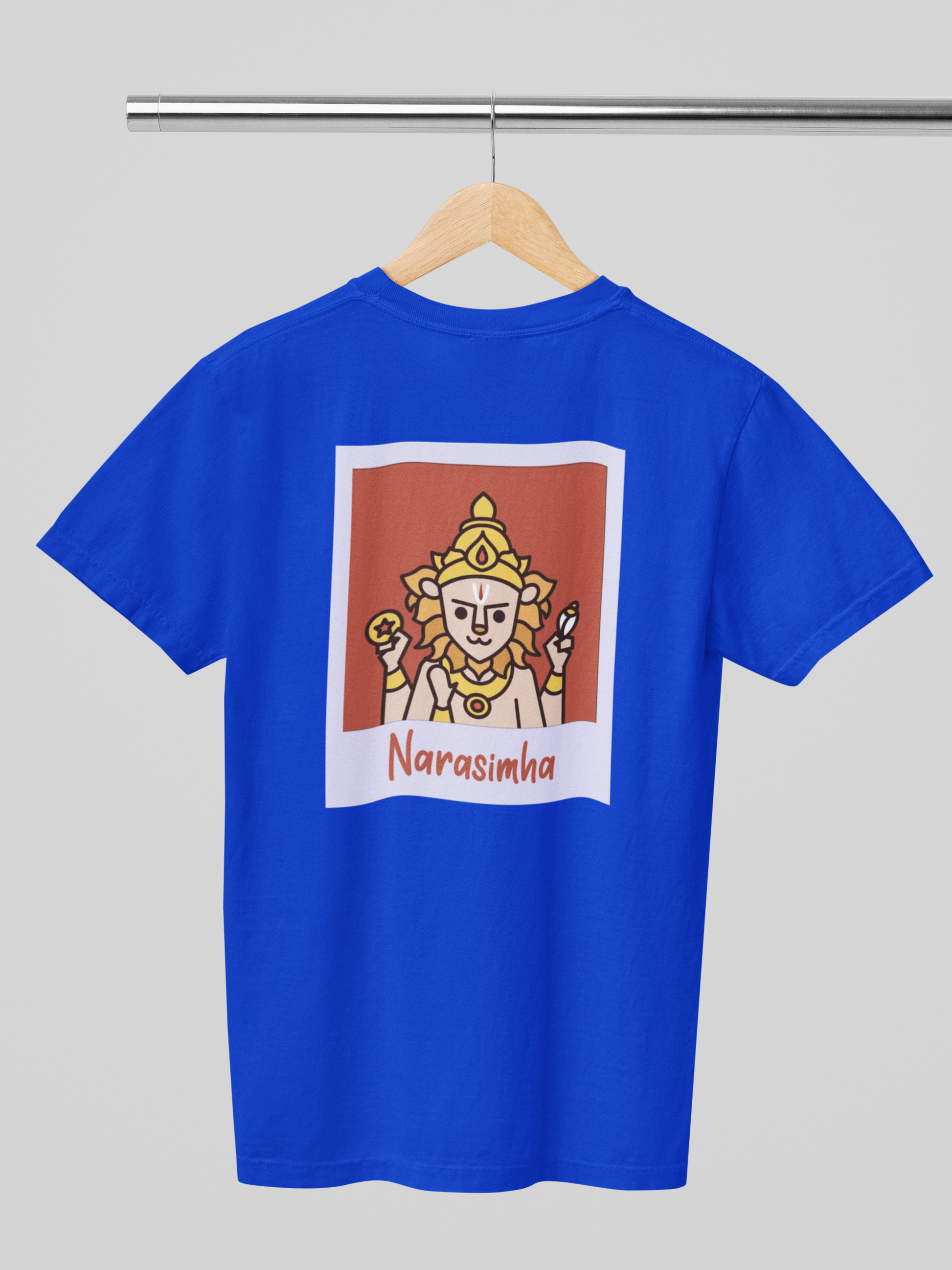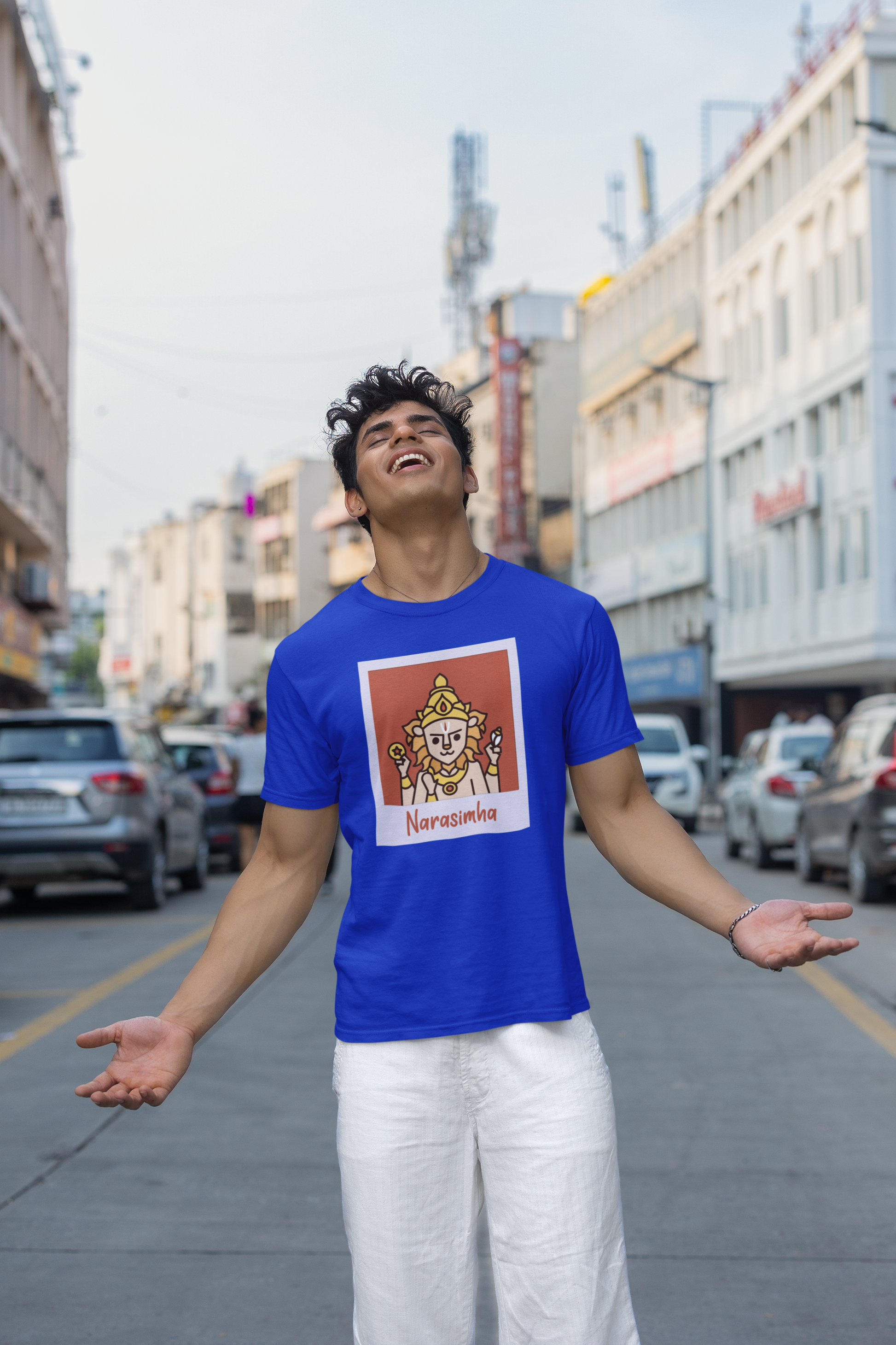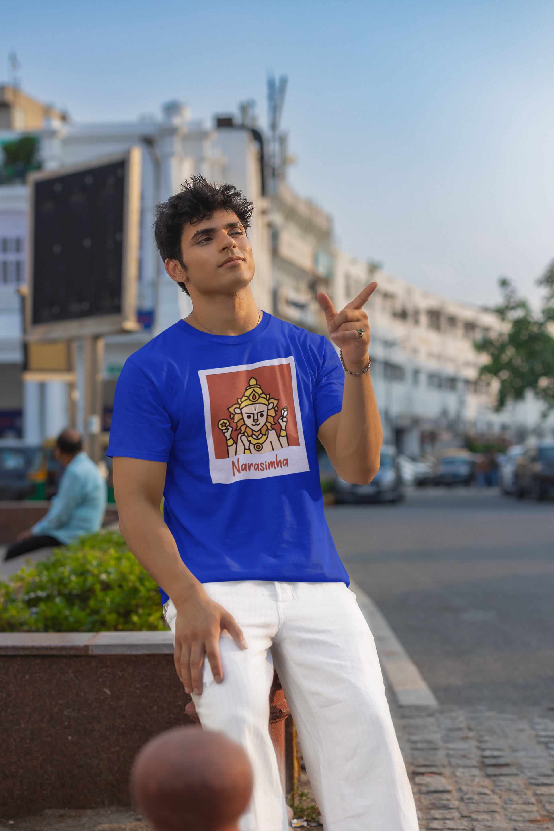 Premium Cotton Blue Graphic T-Shirt - Narasimha