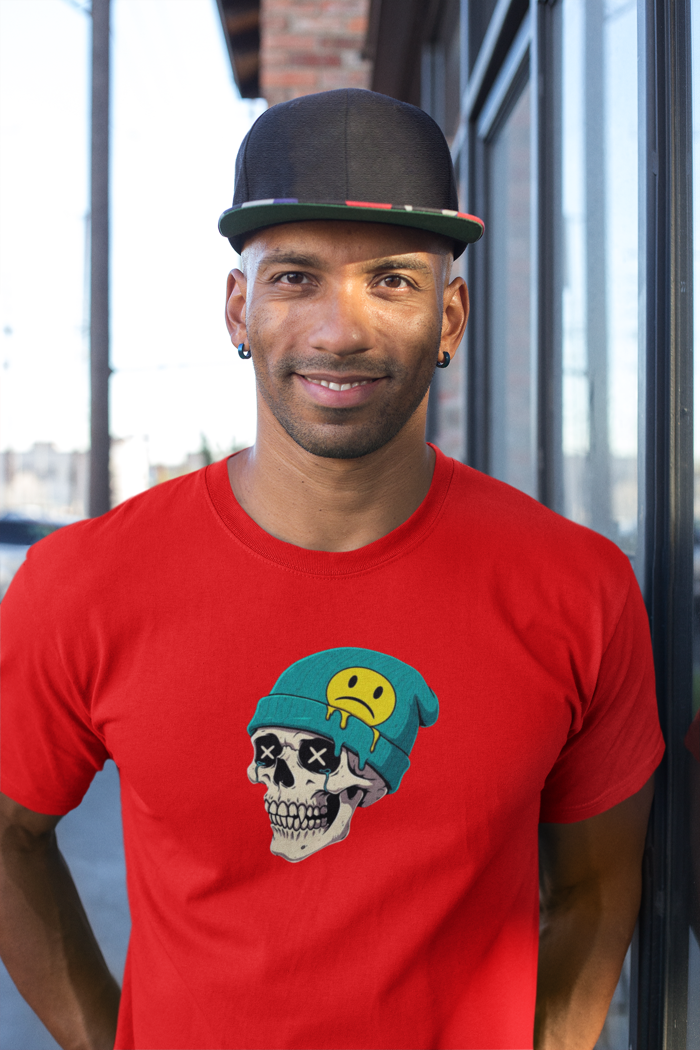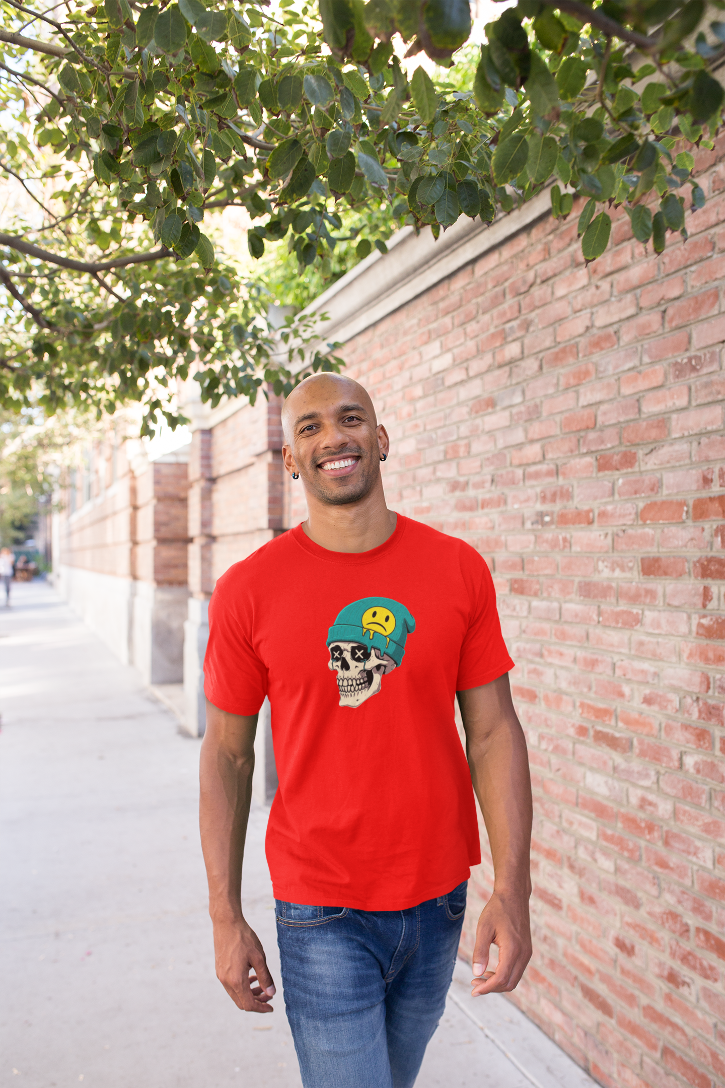Premium Cotton Red Graphic T-Shirt for Men - Skull