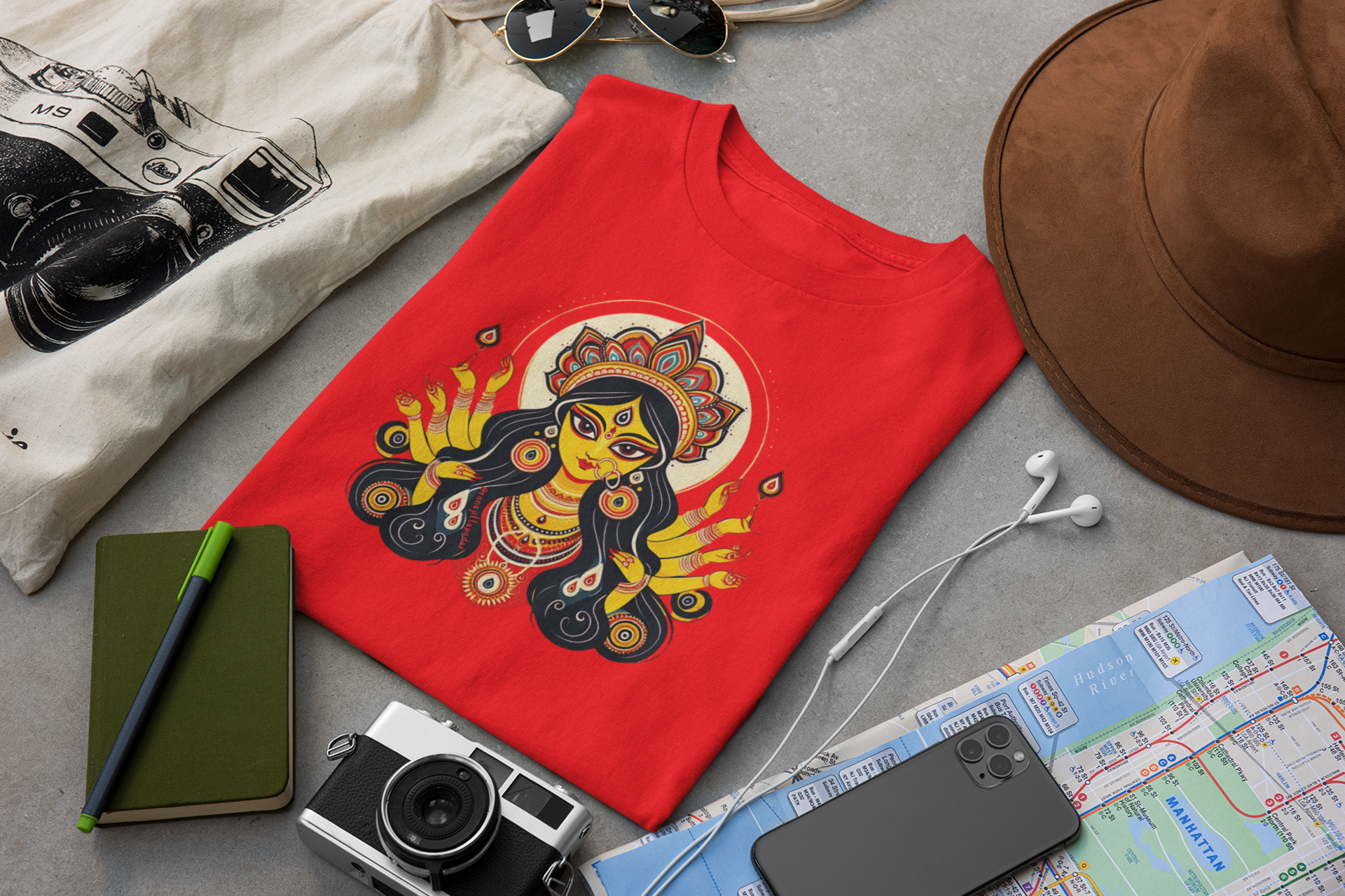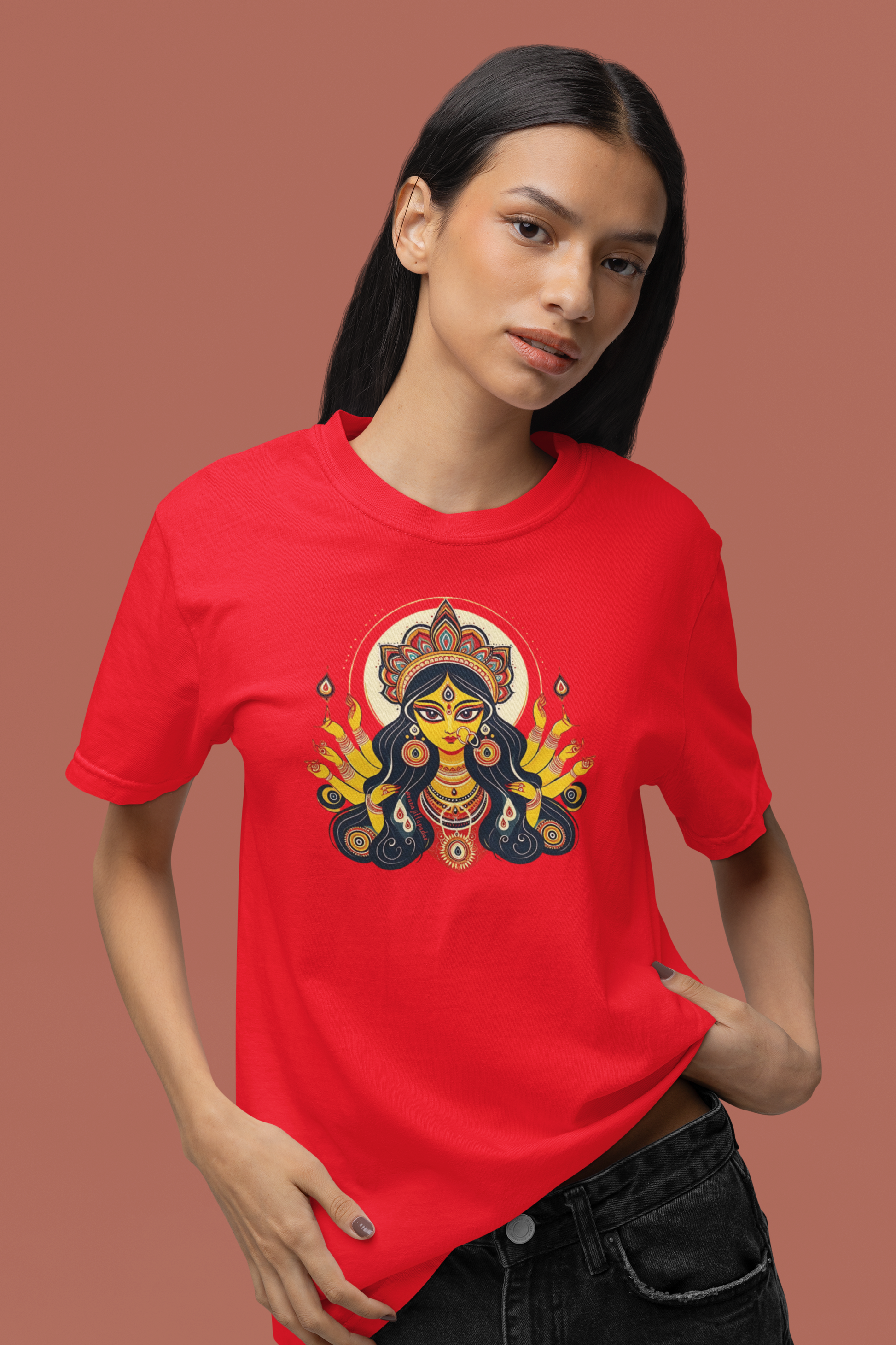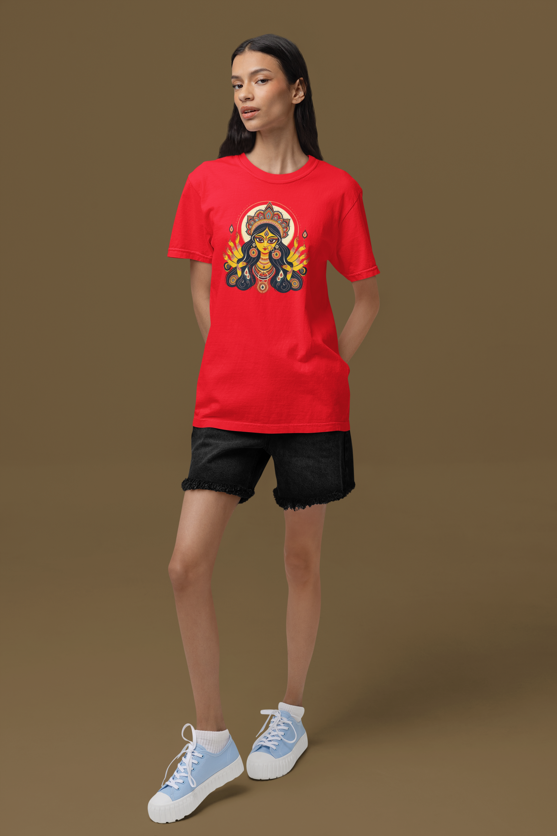 Premium Cotton Red Graphic T-Shirt for Women - Durga